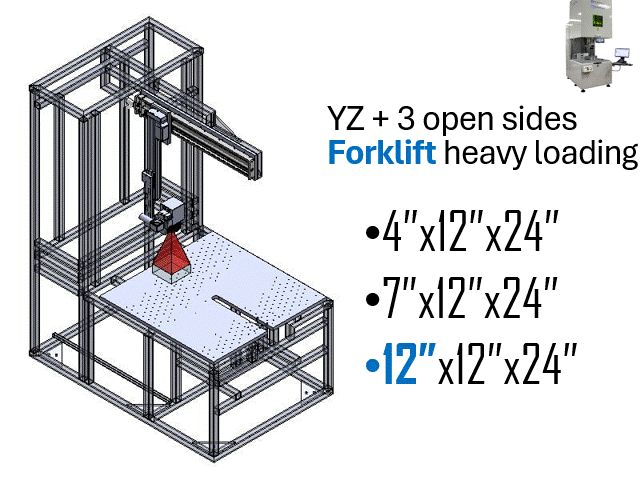 This design has full space available for work piece loading. As a motion control of laser beam delivery, the system fits for any weight or size work pieces, better than the traditional Z+ XY table solution.